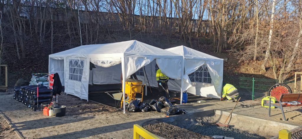 - Przepuszczalność – nawierzchnia wylewana jest wodoprzepuszczalna. Nie stoi na niej woda, a po deszczu szybko wysycha i można kontynuować dalszą zabawę.